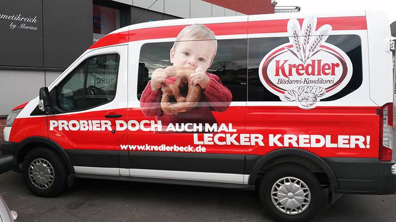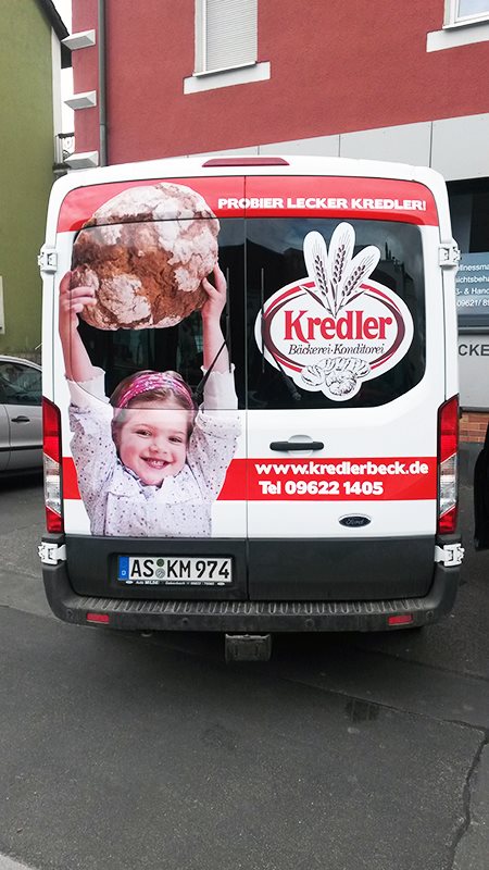 (28.04.2016) Von der Full-Service Agentur Darwin Communication aus Amberg bekamen wir den Auftrag das Firmenfahrzeug der Bäckerei Kredler aus Gebenbach (mit mehreren Filialen in Amberg, Hahnbach und Hirschau) zu bekleben.